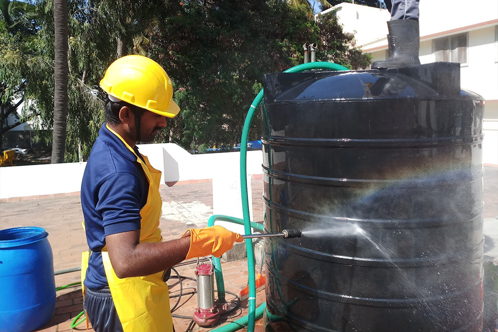 Cleans and disinfects water tanks to maintain safe and hygienic water quality.
